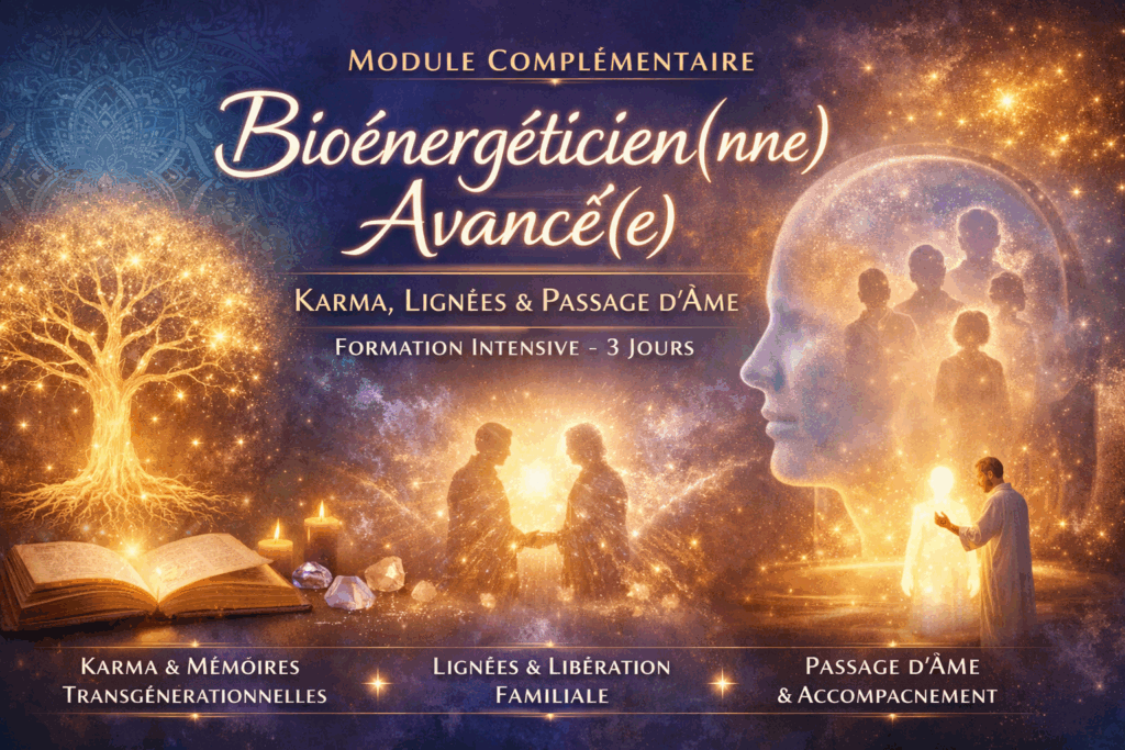 Ce module Bioénergéticien(ne) Avancé(e) s’adresse aux praticiens et praticiennes en bioénergie souhaitant approfondir leur compréhension des mémoires karmiques, des lignées transgénérationnelles et des processus subtils liés au passage d’âme.